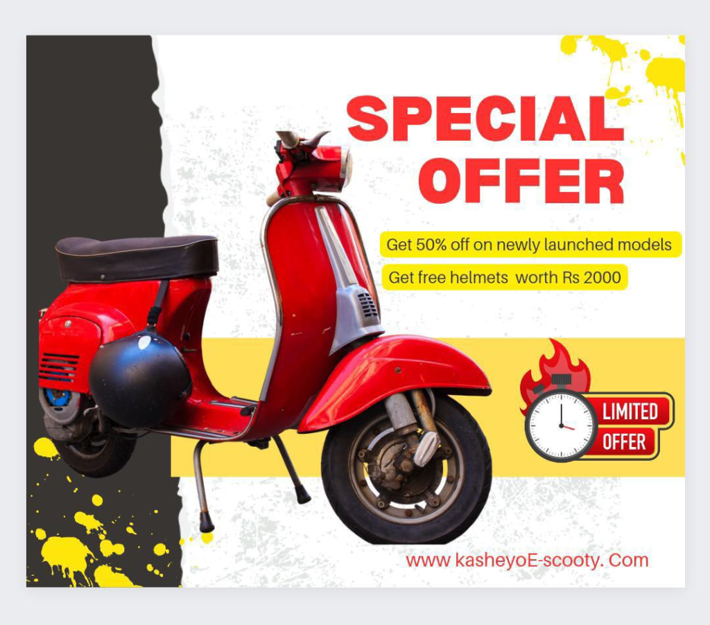 During my campus days, I launched an online business called Kasheyo E-Scooty. I created the website, set up social media channels, and designed engaging posts to promote the brand and build an online presence